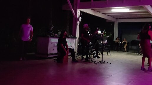 Живая музыка на вечерней дискотеке на отдыхе в Турции. Музыкальный коллектив исполняет песню прошлых лет