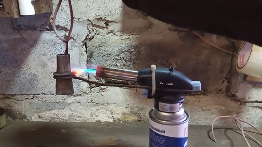 В гараже нужно было спаять несколько скруток проводов. Смастерил приспособление для пайки из газовой горелки, проволоки, трубки