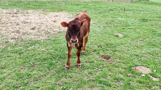 Телочка кушает травку на лугу, привязана цепью! Сельская жизнь, будни КРСкота! Крупный рогатый скот, как есть.