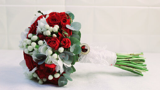 Собираем букет невесты в красно-белой гамме.
