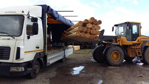 Грузим стеновой комплект оцилиндрованное бревно, дом поедет в Смоленскую область.
