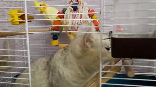 "Попугай, не бойся, я к тебе в гости! Я сама боюсь, но очень любопытно!"
