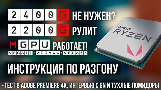 Разгон AMD Ryzen APU 2200G и 2400G, тест mGPU с Vega 64 / 56, интервью с GN и помидоры