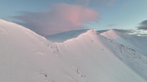 Полет на коптере над горами зимой
