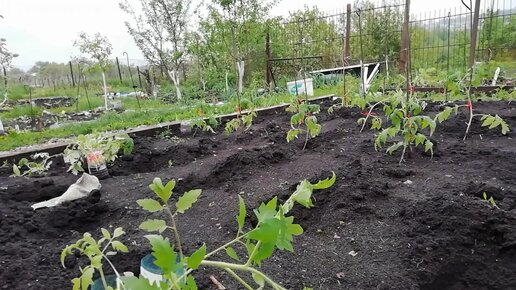 ПОСАДКА ТОМАТОВ в открытый грунт. Сажаю ПЕРЕРОСШИЕ ТОМАТЫ ЛЕЖА..mp4