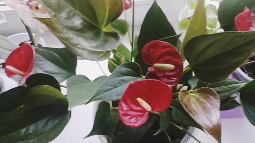 Орхидеи и антуриумы. Комнатные цветы в спальне. Восточный подоконник в апреле.