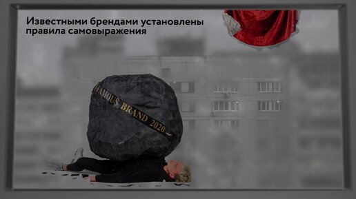 Через искусство, художник вскрывает правду о моде, трендах и выборе самого человека. "Камень" давления и другие символы.