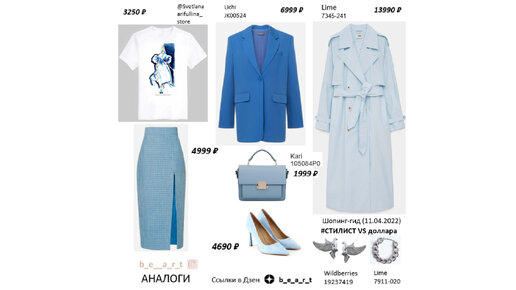 Базовый гардероб. Капсула в синем цвете. Шопинг-гид (11.04.2022). Аналоги Lime, Lichi