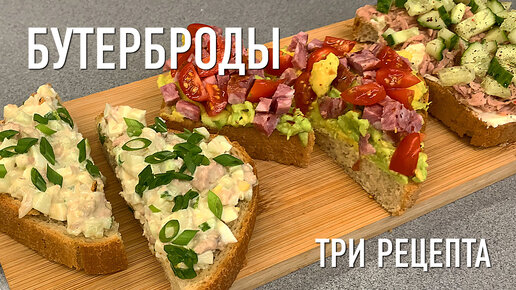 Бутерброды. Три рецепта вкусного завтрака. Печень трески, авокадо, тунец.