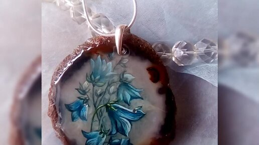 🌸 Кулон c роспись по камню " Небесные Колокольчики " лаковая миниатюра Цветы Колокольчики 🌸