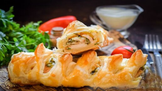 Слойка с ветчиной, сметаной и зеленью петрушки