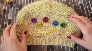 49. ШАПКА спицами из пряжи секционного крашения изнаночной гладью.