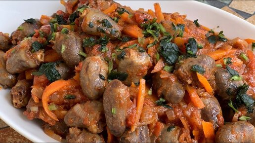 Тушёные куриные сердечки. Простой рецепт тушёных сердечек.