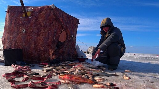 САЗАНЫ, КАРАСИ гнут КИВКИ | ПОСЛЕДНИЙ ЛЁД, НАЧАЛСЯ | Живу на льду 3-е суток | День 1.