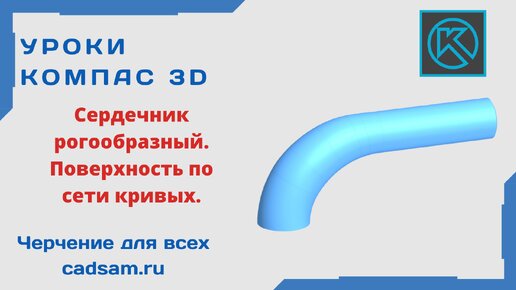 Видеоуроки Компас 3D. Сердечник рогообразный - построение при помощи поверхности по сети кривых.