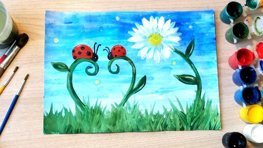 Рисование поэтапно. Божьи коровки. Весенний рисунок