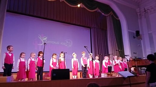 Малыши впервые выступают на большой сцене. Наша маленькая отчетная программа в большом концерте. Поют дети 5-7 лет.