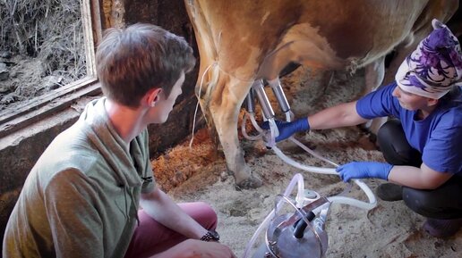 Как доить корову доильным аппаратом?