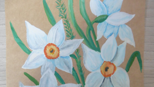 Как нарисовать нарциссы - рисунок гуашью