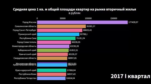 Средняя цена 1 кв. м общей площади квартир на рынке вторичный жилья