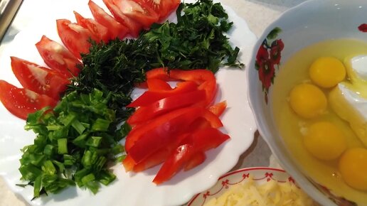 Вкусный омлет со сметаной,овощами,зеленью,овощами.
