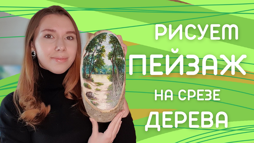 Летний пейзаж пошагово на деревянном срезе. Легкий урок акрилом для начинающих