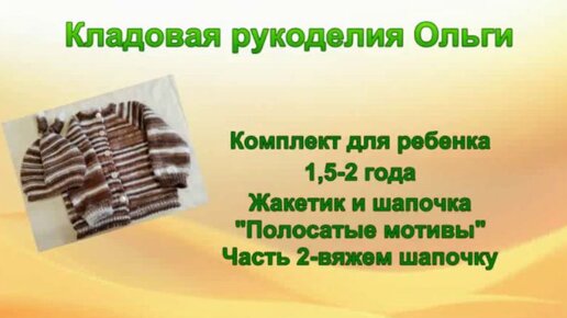 Вязание спицами. Комплект для ребенка 1,5-2 года. Жакетик и шапочка. 2 часть- шапочка