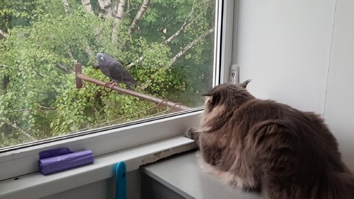 Мейн-кун наблюдает за голубем