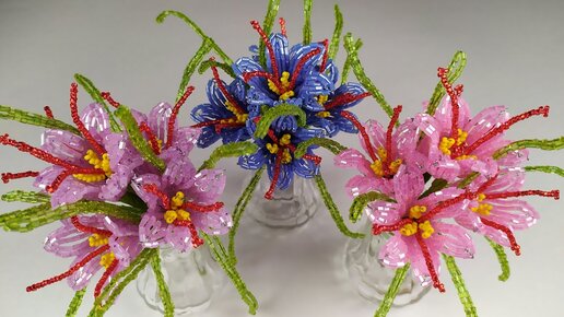 Бисероплетение. Цветы из бисера. 2 часть. Букет Шафрана. Мастер класс. Пошаговый МК для начинающих.