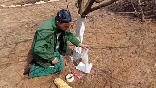 Установка клеевой ловушки (ловчего пояса)