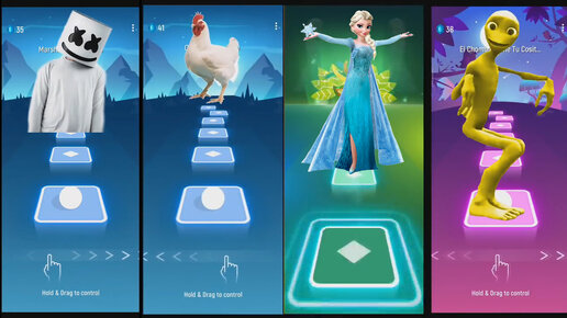 Новая игровая серия Alone vs Chicken Song vs Elsa vs Dame Tu Cosita - Tiles Hop EDM Rush #18