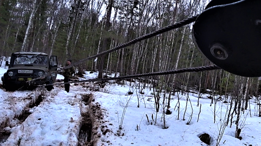 Off-road на болоте, весь маршрут на лебёдках. Уазы и Нивы.