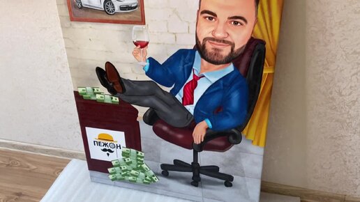 Шарж на холсте 75х100см. Москва. Подарок мужчине бизнесмену, предпринимателю.
