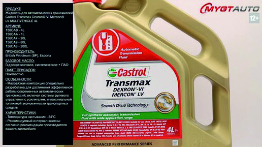 Жидкость для автоматических трансмиссий Castrol Transmax Dexron VI Mercon LV 4L 156CAB #ANTON_MYGT