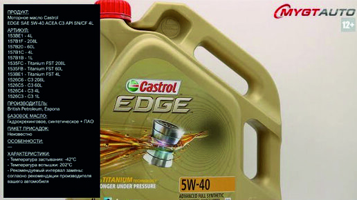 Моторное масло Castrol EDGE SAE 5W-40 ACEA C3 API SN/CF 4L 153BE1 #ANTON_MYGT