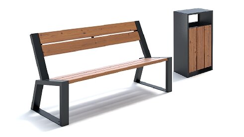 Скамейка Stone 1600 и урна Magma 50 от MIROZDANIE®