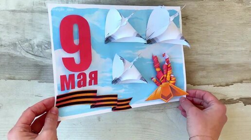 Объёмная поделка ко Дню Победы на 9 мая. Объёмная аппликация 9 мая. Открытка в детский сад на день Победы с шаблонами.
