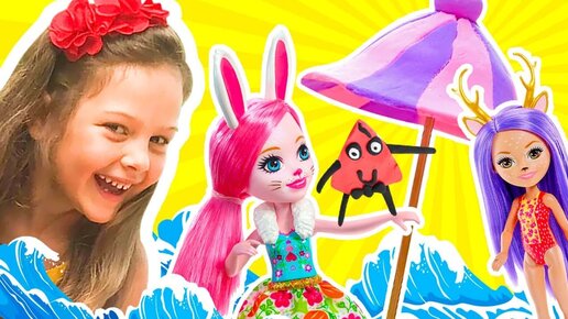 Учим кукол Энчантималс плавать и лепим пляжный зонтик своими руками
