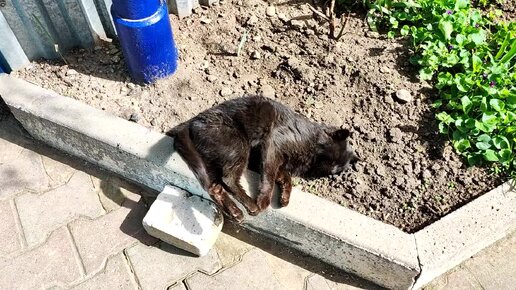 Ленивый кот Черныш, лень накрыла черного кота! Лежит и ворочается, наверное жарко коту!