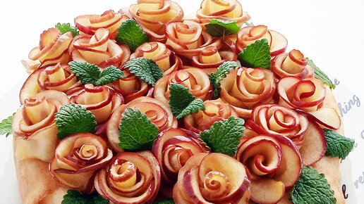 РОЗЫ из ЯБЛОК /Украшение для торта за 10 минут