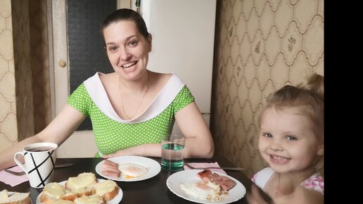 Наш самый вкусный завтрак//Яичница//Жареные сосиски//Бутерброды с сыром.
