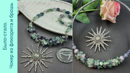 Переделка украшения. Было/не было-стало. Чокер из флюорита и металлическая брошь из кулона