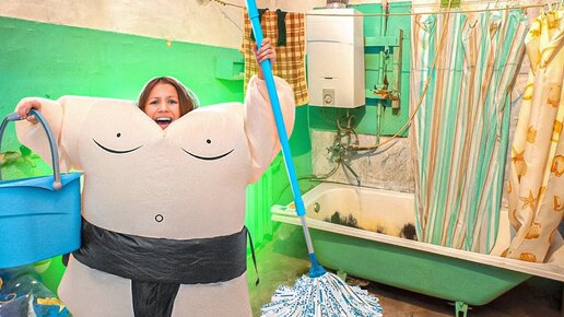 24 часа убираюсь дома в надувном костюме / Вики Шоу