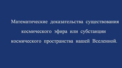 Математические доказательства существования космического эфира или субстанции космического пространства.