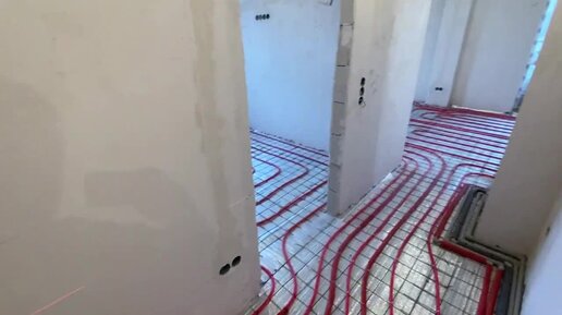 Процесс заливки стяжки "теплого" пола с комбинированным покрытием из кварц-винила и керамогранита