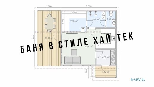 Одноэтажная баня 7х7 в Хай-тек стиле!
