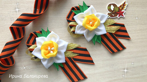 МК Георгиевская Брошь на 9 Мая Своими Руками / Брошь ко Дню Победы с Нарциссом. Канзаши.