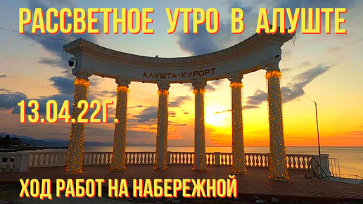 13 04 22г. Рассвет в Алуште. Ход работ/фонтан "Рыбак"/берма/на Центральной набережной.