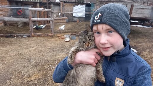 ОДИН НА ХОЗЯЙСТВЕ В 13 ЛЕТ С 2 КОЗАМИ,10 КРОЛИКАМИ И С 11 ПТИЦАМИ