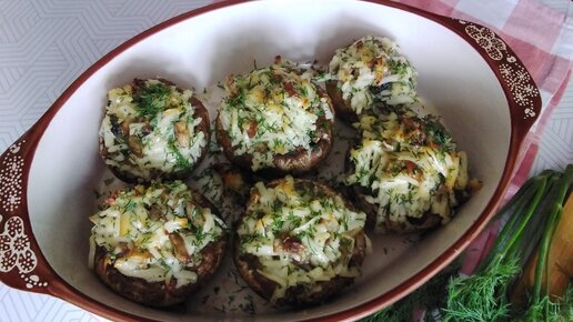Шампиньоны фаршированные сыром и запечённые в духовке. Прекрасная закуска на праздничный стол.